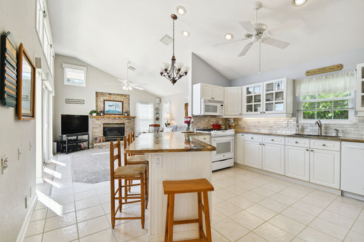 The home is upgraded with a private elevator, natural gas generator, hurricane impact windows and sliders, and a new roof (2024). The kitchen features beautiful shaker-style cabinetry, granite counters, and the luxury of gas cooking. The owner's suite offers private access to the screened-in lanai and has a newly renovated spa-like bath with a walk-in shower and soaking tub. There are two additional bedrooms and an additional full bath. The entire living space is accessible by a large private elevator from the nearly 2,000-square-foot lower level, complete with a 4+ car garage finished with tile flooring and ample additional storage space perfect for a home gym, workshop, or art studio.